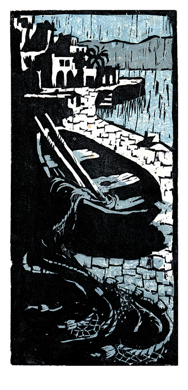 Old fishing boat on stone dock